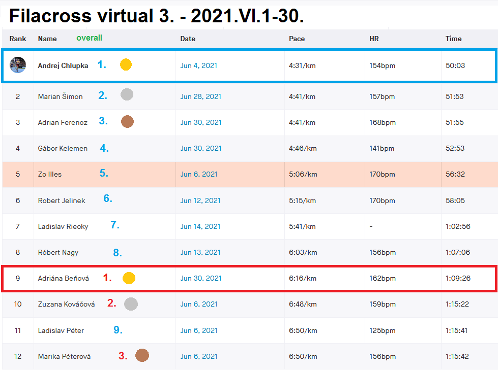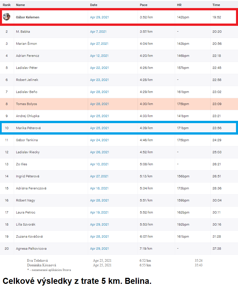 Výsledky prvého kola (tu), 5 km, Belina. TOP 3: